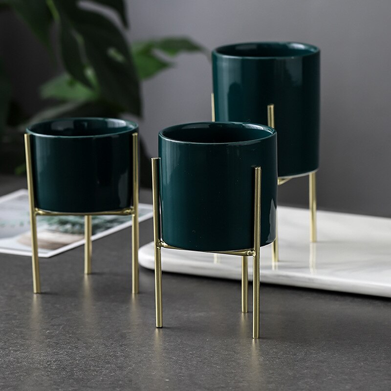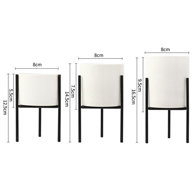 Package included: 3*ceramic planter and metal stand